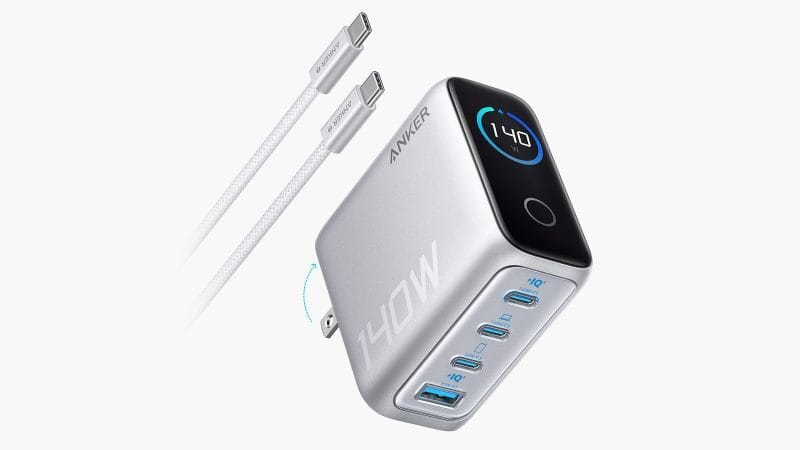 Anker 140W Charger: The Anker 140W Charger is basically a Macbook charger on steroids. It has four ports (three USB-C and one USB), two of which are high power for tech that needs more wattage. It’s also the best looking charger I have seen. I recommend checking out the silver version.